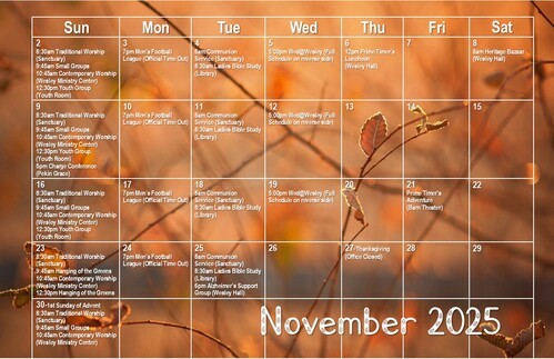 Wednesdays@Wesley (September -April): 5pm (Meal), 6pm (Classes and Bells), 7pm (Choir)